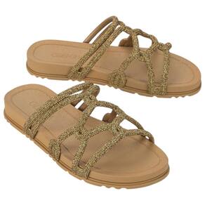 A nova rasteira Grendha Acolher com tiras entrelaçadas e fluídas recebe acabamentos refinados inspirado nos cristais tubulares. O efeito brilhoso intensifica a tendência glamourosa que conquistou a todos na estação. A sola anatômica com linhas delicadas harmoniza com a proposta do cabedal.