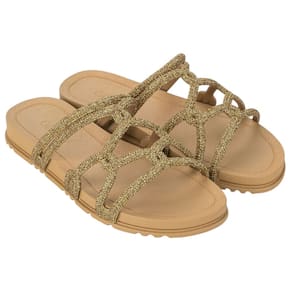 A nova rasteira Grendha Acolher com tiras entrelaçadas e fluídas recebe acabamentos refinados inspirado nos cristais tubulares. O efeito brilhoso intensifica a tendência glamourosa que conquistou a todos na estação. A sola anatômica com linhas delicadas harmoniza com a proposta do cabedal.