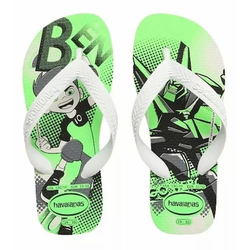 Descrição Ben 10 e seu incrível Omnitrix são o tema das estampas dessa Havaianas Kids, que é perfeita para a criançada se aventurar com conforto. Com cores ultra vibrantes (o verde limão é neon!), o modelo vai fazer o maior sucesso entre os pequenos.