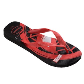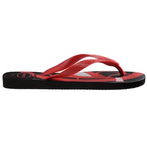 Os super-heróis da Marvel têm características inconfundíveis. A Havaianas Top Marvel Logomania tem solas estampadas justamente com essas representações icônicas: uma mão verde (Hulk), um capacete (Homem de Ferro) e uma máscara (Homem Aranha). Um chinelo poderoso!