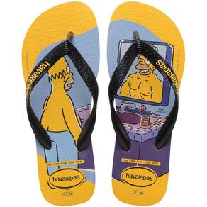 Descrição O chinelo Havaianas Simpsons é tão irreverente quanto os personagens da icônica série de TV. De alta qualidade e com formato top, ou seja, com as tiras mais largas. E o chinelo ainda possui o clássico logo Havaianas em destaque. Compre já.
