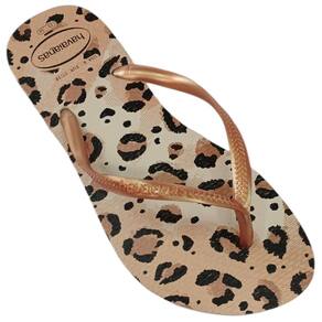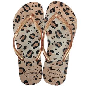 A Havaianas Slim Animals é uma ótima opção para os amantes de animal print. Com sola e tiras finas e delicadas.