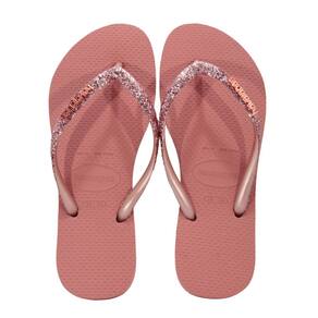 A Havaianas Slim Glitter II tem uma paleta de cores sofisticada e um novo formato do glitter aplicado nas tiras, que reflete a luz de uma maneira mais pura e deixa o modelo ainda mais brilhante.