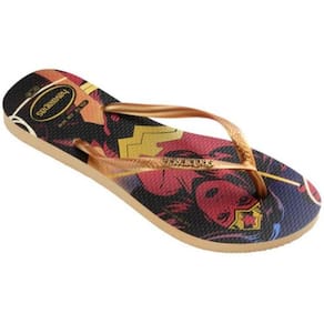 A melhor palavra para descrever o chinelo feminino Havaianas Slim Wonder Woman é icônico. Com formato slim, ou seja, tiras e solado mais finos, essa sandália traz duas estampas incríveis de uma das maiores heroínas de todos os tempos, a Mulher-Maravilha. Além disso, os modelos contam tiras metalizadas e o logo da Havaianas em destaque.