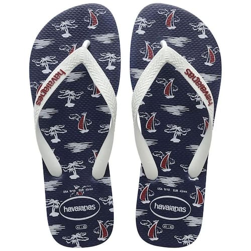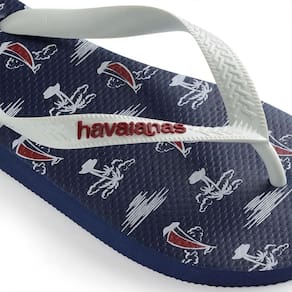 A Havaianas Top Nautical traz todo o charme do estilo náutico com releituras de vários listrados. Seja em azul, branco e vermelho ou em listras com um veleiro no mix, esse chinelo é uma ótima escolha para quem é do mar.