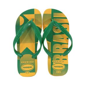 A linha Havaianas Vai Brasil (frequentemente associada aos modelos "Brasil" e "Brasil Logo") é um clássico da marca que celebra o orgulho nacional com as cores da bandeira e a famosa bandeirinha na tira.