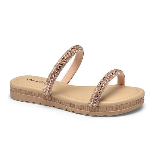 Chinelo Infantil Flat Duas Tiras Brilho Pink Cats V3971