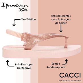 Conheça agora o chinelo Ipanema, muito elegante e sofisticado, perfeito para a parte social e a casual da vida de suas crianças, seja para passear ou brincar dentro de casa, ela atende a todas a situações.
