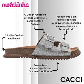 Chinelo Infantil Menina Facil Calce Ajustavel Molekinha - 35 - Prata