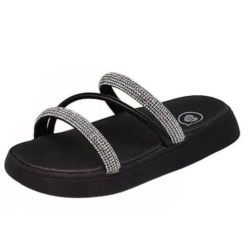 Para adicionar um toque de glamour ao visual, as tiras do chinelo são adornadas com strass delicados, que brilham sob a luz do sol. Combinando charme e sofisticação, as tiras proporcionam um ajuste confortável, garantindo que os pés fiquem seguros e bem acomodados.