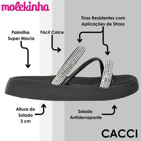 Chinelo Infantil Menina Fácil Calce Tira Brilhante Molekinha - 34 - Preto
