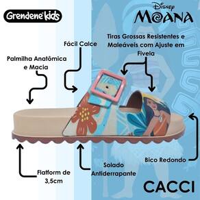 Palmilha anatômica e macia com estampa da Moana: conforto absoluto com um toque lúdico para encantar.