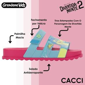 As tiras no formato H que são tendência no mundo da moda, agora recebem cores vibrantes, personalização das famosas emoções de Divertidamente. Modelo usual e moderno, possui fechamento autocolante no peito do pé, garantindo conforto e segurança ao calce. As tiras recebem grafias reconhecidas das licenças e a tira superior conta com a assinatura e elementos de cada personagem, sua palmilha é macia e confortável fazendo com que a criançada brinque e se divirta com muito mais conforto.