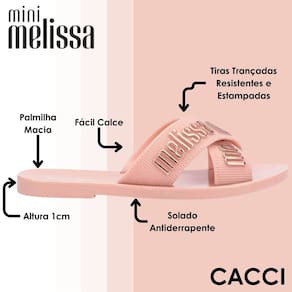 Este modelo da marca Melissa é parte da tendência casual, sendo um chinelo despojado e versátil, que combina com diversos looks e ocasiões. Ele possui um design exclusivo e acabamento brilhante, adicionando um toque de personalidade ao seu dia.