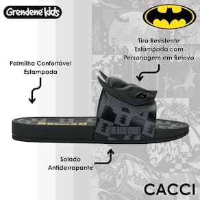 O chinelo infantil masculino Slide Batman Adventure 23033 é a escolha perfeita para os pequenos fãs do icônico Cavaleiro das Trevas. Com um design moderno e cheio de personalidade, este chinelo é mais do que um calçado, é uma verdadeira aventura para os pés dos meninos.