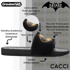 O reconhecido Batman é o personagem escolhido para trazer a nova cara ao nosso slide. Com o efeito ‘Fluffy’, por toda a tira superior o Batman Darkness proporciona um toque macio e inovador, além de dar destaque ao personagem com o logo e a palmilha estampada trazendo histórias em quadrinhos.
