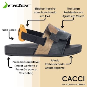 Os chinelos Slide Baby da marca Rider são versões infantis dos populares chinelos slide, projetados especificamente para os pés dos pequenos. Esses chinelos são conhecidos por sua praticidade, conforto e estilo. Os chinelos Slide Baby Rider são fabricados com materiais de alta qualidade e seguros para as crianças, como borracha macia e resistente. Eles são projetados para serem fáceis de calçar e tirar, proporcionando praticidade tanto para os pais quanto para as crianças. Apresentam uma tira larga na parte superior, que passa pela parte superior do pé e proporciona um ajuste seguro, com elástico traseiro solado e tira autocolante na gáspea. A tira geralmente possui o logotipo ou o nome da marca Rider, acrescentando um toque de estilo ao calçado.