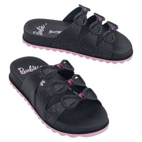 Perfeito para as pequenas que adoram brilho e estilo, o Chinelo Slide Barbie Charm é a união ideal entre conforto, praticidade e um toque fashion. O destaque fica por conta das tiras com glitter e delicados laços aplicados, que trazem o charme da personagem em um visual moderno e encantador para o dia a dia.