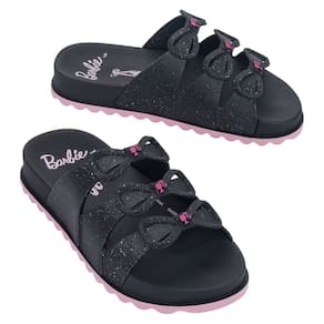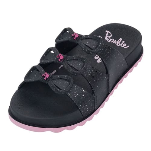 Perfeito para as pequenas que adoram brilho e estilo, o Chinelo Slide Barbie Charm é a união ideal entre conforto, praticidade e um toque fashion. O destaque fica por conta das tiras com glitter e delicados laços aplicados, que trazem o charme da personagem em um visual moderno e encantador para o dia a dia.