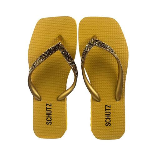 Prova de que até mesmo os modelos mais simples também podem carregar uma boa dose de estilo, esse chinelo ganha personalidade imediata com a aplicação do logo SCHUTZ e a moderna frente quadrada! Trazendo ainda o toque glam do pequeno Triangle metalizado, sem falar na leveza da construção, essa sandália flip flop vai ser uma escolha estilosa e confortável para acompanhar seus melhores momentos relax.