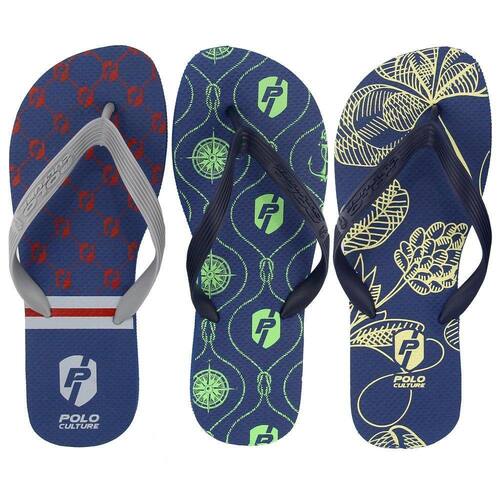 Chinelo Masculino Borracha Polo Culture Estampado Kit 3 - 45-46 - Azul doce