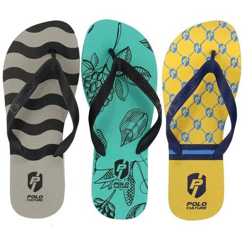 o Kit 3 Pares de Chinelo Polo Culture possui design despojado e versatilidade para combinar em diversas ocasiões. O modelo é confeccionado em Borracha flexível, gerando maior conforto durante o calçar. A combinação da palmilha macia e o solado em borracha, proporciona conforto e segurança no dia a dia. Modelo ideal para combinar em diversas ocasiões.