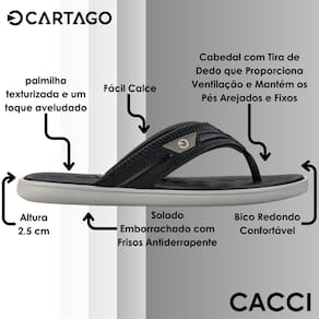 Um estilo marcante para fazer sucesso nas suas gôndolas! O Cartago Malta VI Dedo Adulto é elegante e moderno, com tiras largas, palmilha texturizada e um toque aveludado na palmilha que garantem conforto por muito mais tempo. É a opção ideal para seus clientes que desejam combinar estilo e conforto para todos os momentos casuais.