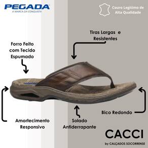 Confeccionado em couro de alta qualidade, este chinelo destaca-se pela resistência e robustez do material. Além de ser visualmente atraente, o couro proporciona uma sensação suave ao toque, garantindo conforto desde o primeiro momento de uso. A sua resistência natural promete enfrentar os desafios do dia a dia com facilidade.