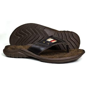 Chinelo Masculino de Couro Marrom 100 - 37 - Marrom