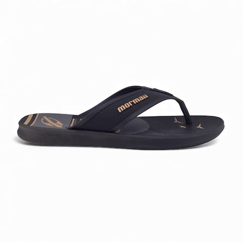 O chinelo Mormaii wave ganha novo cabedal, com tiras que trazem design que simulando acabamento em vira têxtil e costuras, tudo com alta tecnologia de definição, além de uma combinação entre acabamentos fosco e polido, que deixam o visual do produto ainda melhor. O logo de Mormaii é aplicado na dedeira. As listras que aparecem nas pranchas e bermudas de surf são transformadas em grafias, em combinação com a silhueta da praia. As combinações de cores trazem uma proposta urbana e moderna.