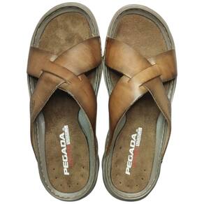 Chinelo Masculino Pegada Couro Calce Facil Tiras 134102 - 42 - Marrom