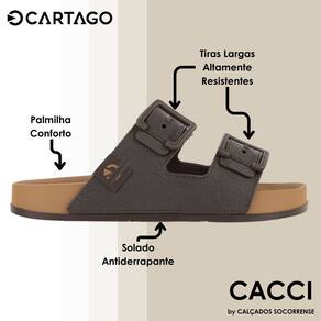 A sandália Cartago Milão tem um estilo clássico atemporal, versátil para diversos looks, fácil de calçar e muito confortável para os momentos casuais. O cabedal tem texturas modernas inspiradas em espinha de peixe, croco e efeito visual de camuflado e as diversas cores oferecem estilo em diferentes opções que fazem sucesso, perfeito para composição de looks estilosos, sem deixar de lado o conforto.
