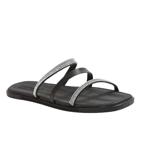 Chinelo Moleca Rasteiro Três Tiras Feminino Preto Strass 337355