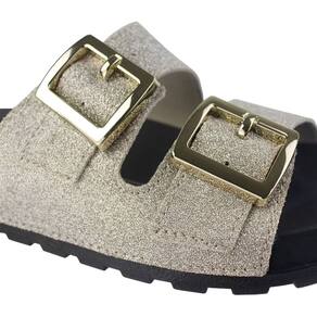 Chinelo Moleca Slide Duas Tiras Feminino Dourado 340062