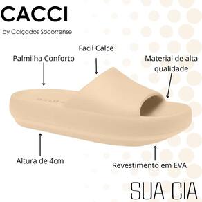 O Chinelo Sua Cia Cloud Eva, também conhecido como chinelo nuvem devido a sua leveza, maciez e ação anti-impacto possui características anatômicas e anti-derrapante. A peça que promete lhe surpreender pelo conforto possui bordas elevadas para contenção em todo o contorno para acomodação dos dedos, isso evita a lateralização do calcanhar ajudando a estabilizar, dar suporte e realinhar os pés e tornozelos na posição mais correta oferecendo maior controle e segurança ao caminhar.