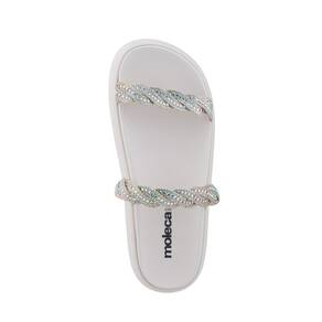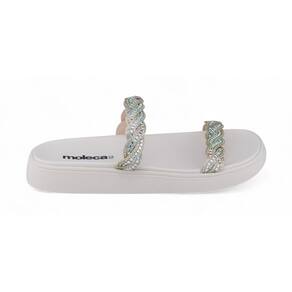 Chinelo Papete Feminino Moleca 5469.133 tiras cristal brilho - 35 - Branco