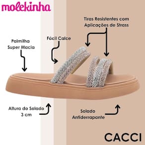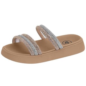 Para adicionar um toque de glamour ao visual, as tiras do chinelo são adornadas com strass delicados, que brilham sob a luz do sol. Combinando charme e sofisticação, as tiras proporcionam um ajuste confortável, garantindo que os pés fiquem seguros e bem acomodados.