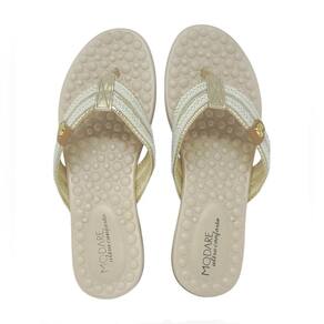 Design sofisticado: tira única de dedo resistente com detalhes de pedrarias e tranças metalizadas que acrescentam um toque de charme ao visual.