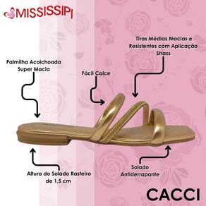 Garanta já o seu chinelo rasteiro metalizado strass da Mississipi e aproveite cada momento com conforto e estilo.