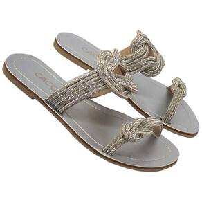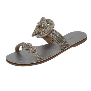 Chinelo Slide de Brilho Rasteirinha Cacci Feminino Dia a Dia - 36 - Prata