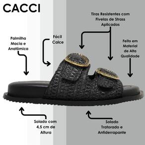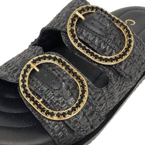 Chinelo Slide Fácil Calce Strass Moderno Conforto Cacci - 38 - Preto