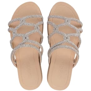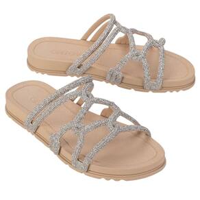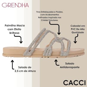 A nova rasteira Grendha Acolher com tiras entrelaçadas e fluídas, recebe acabamentos refinados inspirado nos cristais tubulares. O efeito brilhoso intensifica a tendência glamourosa que conquistou a todos na estação. A sola anatômica com linhas delicadas harmoniza com a proposta do cabedal.