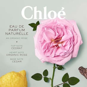 Exalando o aroma moderno de rosa orgânica, Chloé Naturelle Eau de Parfum é um perfume floral irresistivelmente feminino, conectando a força e a espontaneidade da natureza com a da mulher de espírito livre Chloé. Sem esforço, elegante, mas também autêntica e consciente, vive em harmonia com o ambiente natural que preza e que a inspira.