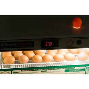 A chocadeira chocmais é um produto de fácil manuseio e com manual de instrutores. Características: -Basta posicionar os ovos e seguir as orientações do manual -Cada produto é testado e configurado na fábrica; -Ótimo isolamento térmico -Material em mdf15 mm -Aquecimento com resistência níquel cromo -Porta de acrílico de alta resistência com 4mm -Viragem dos ovos automática -Termostato de última geração -Controle de temperatura automática -Configurado de fábrica -Ventilação forçada -Bandeja de água -Manual de usuário -Ovoscópio Aumente a sua taxa de eclosão: O ovoscópio é utilizado para analise embrionária, através desse exame é possível determinar problemas antes da eclosão, como trinca interna, má formação da casca, verificar os ovos que estão galados após 1/3 da realização da choca. Ficha técnica - Voltagem: 110 v - Porta: Acrílico - Comprimento: 33,5 - Com controle de temperatura: Sim - Capacidade máxima de ovos: 48 - Largura: 23,5 - Com rotação automática de ovos: Sim - Cor: Branca - Com controle de umidade: Não - Material: MDF Obs.: Não acompanha lâmpada de led. Você pode usar uma lâmpada de led 7w, encontrada em qualquer mercado.