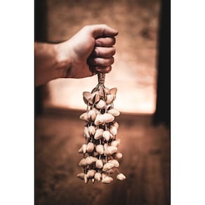 Com uma estética marcante e vibração selvagem, o Kenari Shaker transforma o simples ato de sacudir o pulso em uma experiência rítmica poderosa. Feito com cascas autênticas de sementes de Kenari, cuidadosamente presas a uma alça de pulso confortável, este instrumento se destaca tanto pelo visual quanto pela força sonora. Seu timbre potente e definido é a escolha certa para sessões acústicas mais intensas, nas quais o shaker precisa não apenas complementar, mas liderar o pulso musical. Em rodas de música, jams ao ar livre ou vivências percussivas, ele entrega clareza e impacto com uma personalidade única.