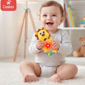 Chocalho mordedor infantil leãozinho com som e luz - castela