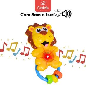 Chocalho mordedor infantil leãozinho com som e luz - castela