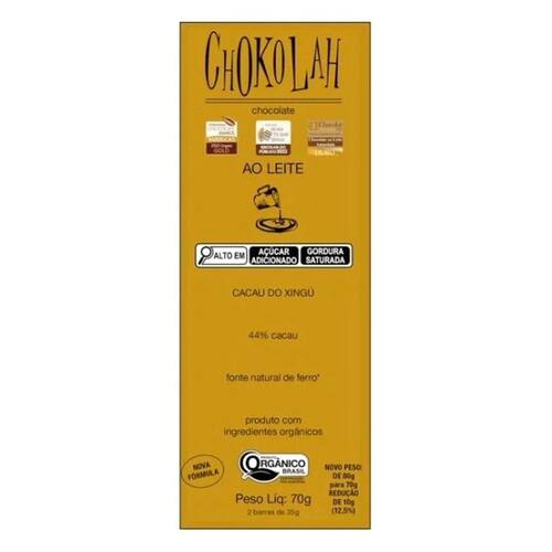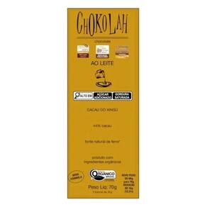 Chocolate ao leite 44% cacau com açúcar demerara orgânico chokolah 70g