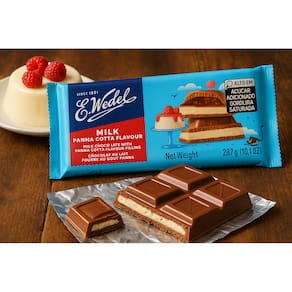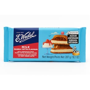 Você está adquirindo 1 (uma) unidade de Chocolate Ao Leite Panna Cotta - E.Wedel - Importado Polônia. Panna Cotta Flavour !!! O chocolate meio amargo, da E. Wedel é único e absolutamente delicioso e nessa versão o recheio é com panna cotta. O creme Panna cotta é típico da região italiana de Piemonte, elaborado a partir de nata de leite, podendo conter especiarias. Ideal para saborear, ou presentear aquela pessoa especial. Experimente e delicie-se com esta preciosidade. O sabor é incrível, e você não pode ficar fora dessa. E. Wedel é uma empresa polonesa de confeitaria, que produz uma variedade de chocolates, bolos e salgadinhos desde 1851. É a marca mais reconhecida de doces na Polônia, considerada a "marca de chocolate nacional polaca". Marca: E.Wedel Composição: açúcar, manteiga e pasta de cacau, leite integral em pó, soro desidratado, polpa de maça, lecitina de soja, concentrado de vegetal. Alergênicos: contém glúten, amendoim, nozes, ovo, cereais. Origem: Polônia Peso: 287g Deliciosa barra de chocolate meio amargo, Milk Chocolate Panna Cotta, com recheio cremoso e suave, da renomada marca E.Wedel. Marca: Não Informado