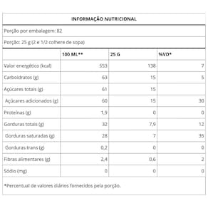 Informação Nutricional Porções por embalagem: 82 Porção: 25 g (2 1/2 colheres de sopa)